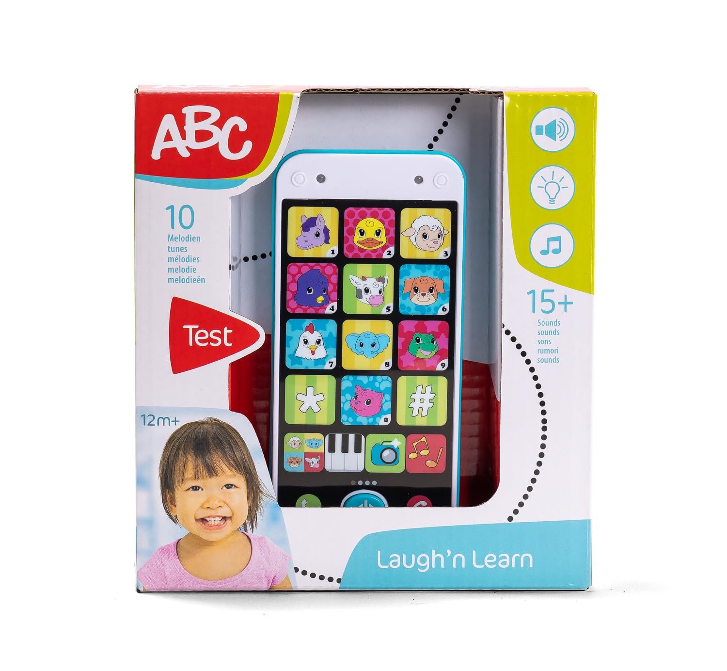 Simba 104010002 ABC Kinder-Smartphone: buntes Spielzeughandy ab 12 Monaten mit Licht, Sound, Melodien & Tiergeräuschen. Kindgerechte, reduzierte Lautstärke – ideal für frühe Entwicklung