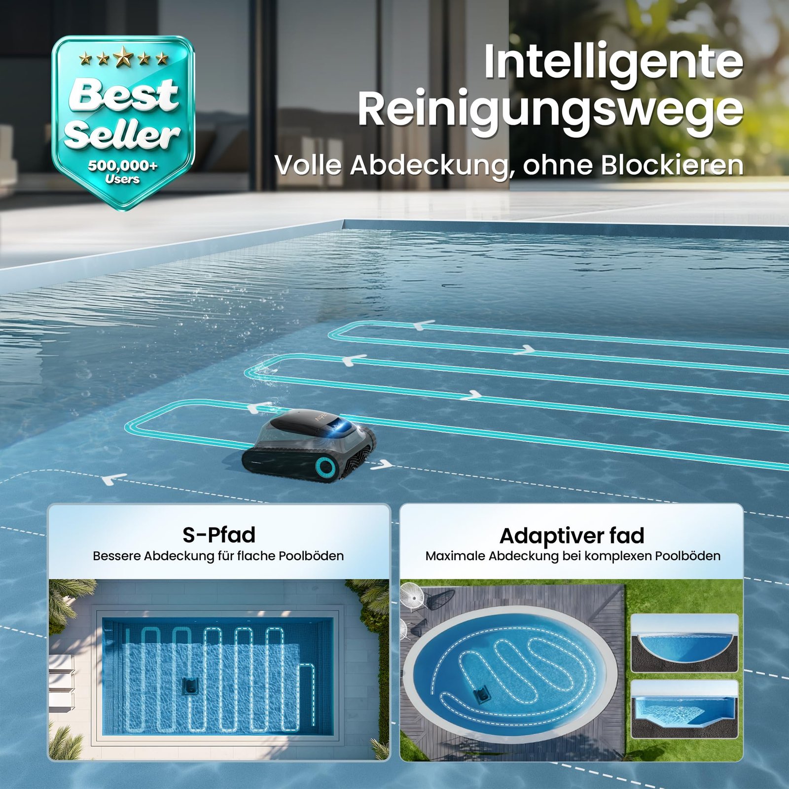 - Intelligente App-Steuerung & OTA-Updates: Steuern Sie den Poolroboter bequem über die mobile App. Wählen Sie aus 5 Reinigungsmodi, prüfen Sie Reinigungsprotokolle und profitieren Sie von nahtlosen Over-the-Air-Updates für kontinuierliche Verbesserungen.