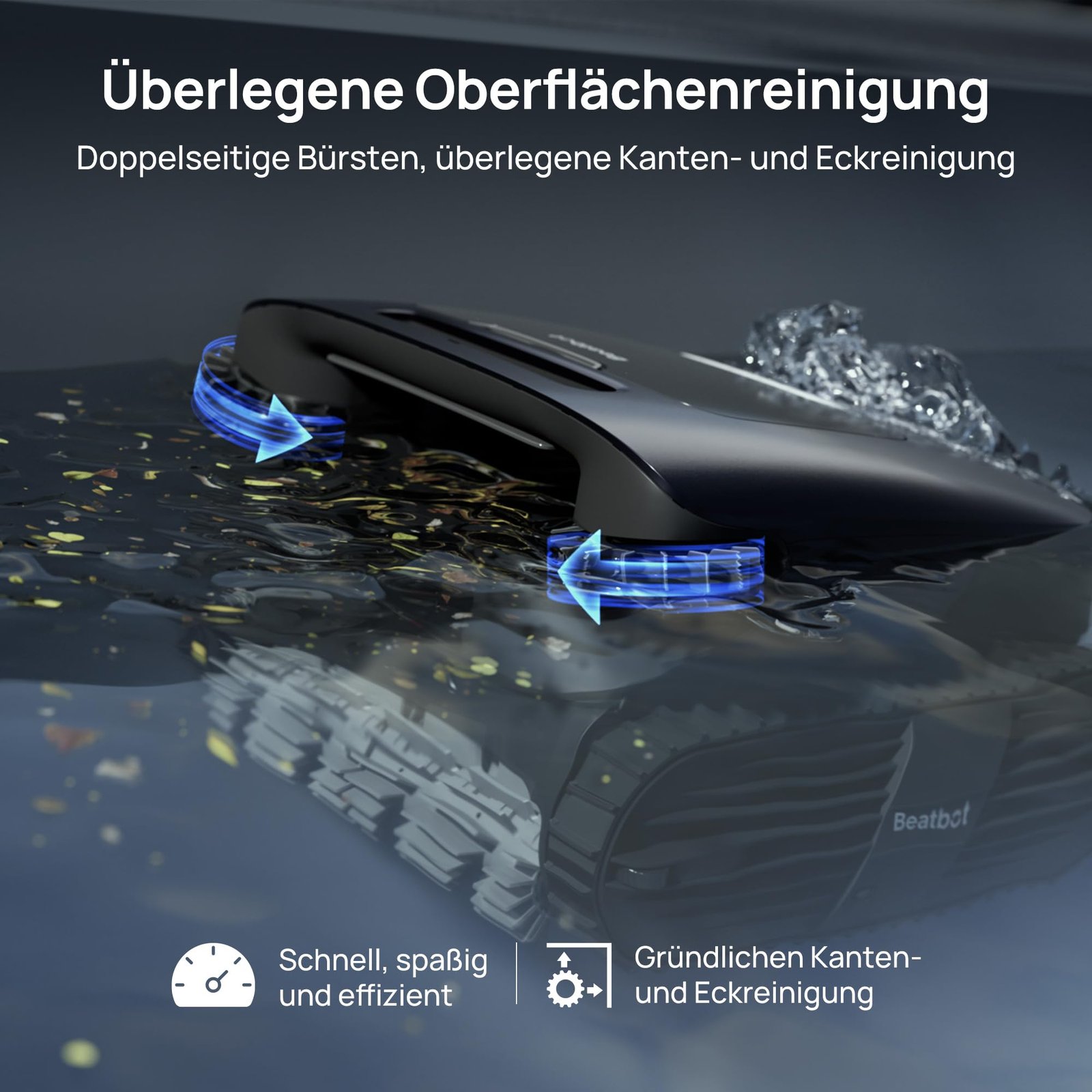 • BranchenfĂĽhrende Abdeckung mit 5-in-1-Reinigung: Reinigen Sie Ihren Pool von Kopf bis FuĂź – Oberfläche, Wasserlinie, Wände, Boden und klären Sie sogar das Wasser – all das mit nur einem Gerät. Sparen Sie Zeit, Geld und MĂĽhe mit dem innovativen Unterwasser-Antriebssystem. So brauchen Sie keine zusätzlichen Geräte mehr!