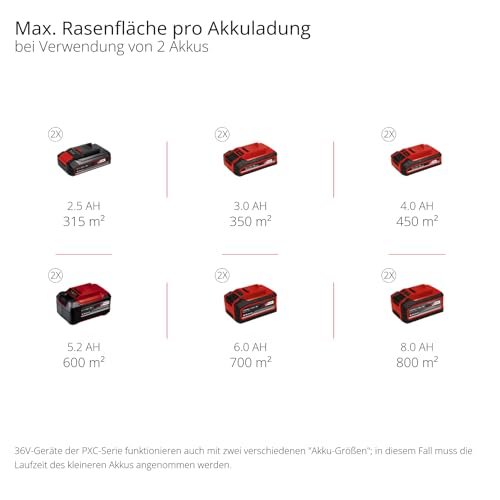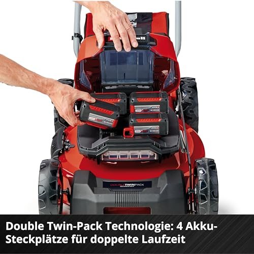 Als Teil der Einhell Power X-Change Familie bietet der Rasenmäher maximale Flexibilität, da Akkus, Ladegeräte und weitere Systemgeräte innerhalb der Serie kombiniert werden können. Die Double-Twin-Pack Technologie mit 4 Akku-Steckplätzen sorgt für mehr Leistung und eine besonders lange Laufzeit, wodurch auch ausgedehnte Mäharbeiten effizient erledigt werden können.