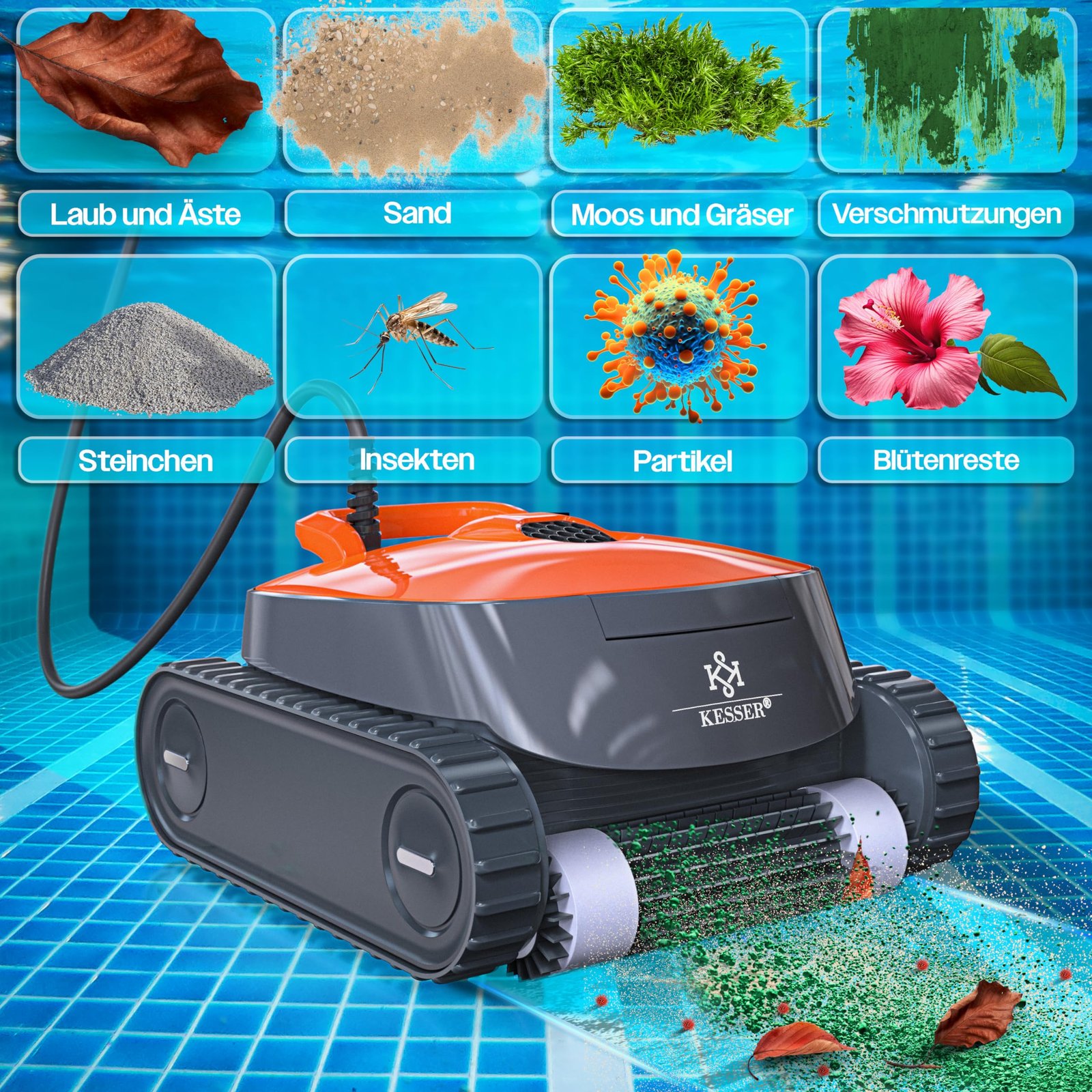 KESSER Poolroboter | Boden+Wand Wasserlinie | 100m² Ursprünglicher Preis war: €348.80Aktueller Preis ist: €174.40.