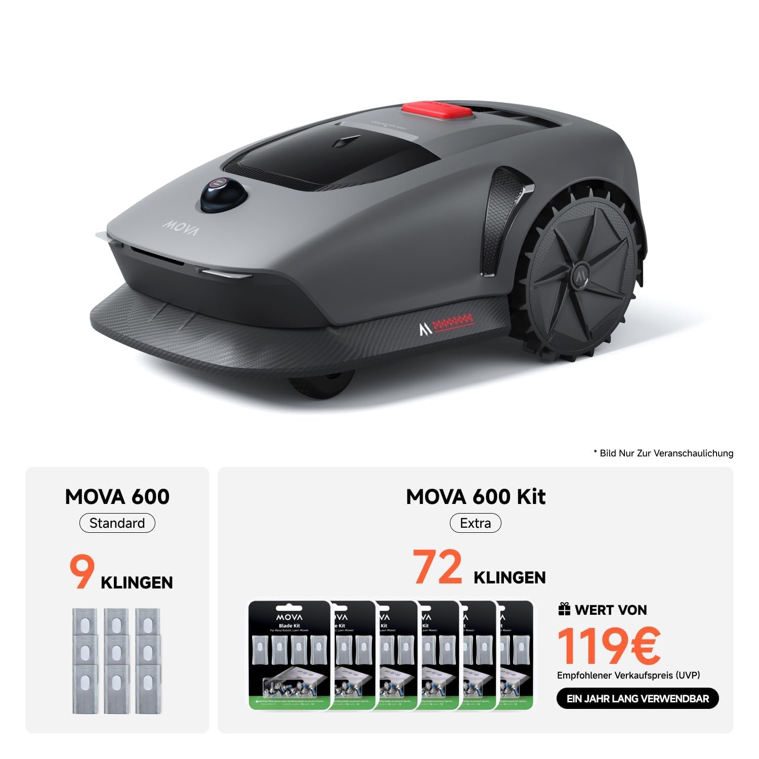 Der MOVA 600 Kit ist damit eine starke Wahl für alle, die eine präzise, kabellose und benutzerfreundliche Lösung für die automatische Rasenpflege suchen und gleichzeitig von einem umfangreichen Ersatzklingen-Set profitieren möchten.