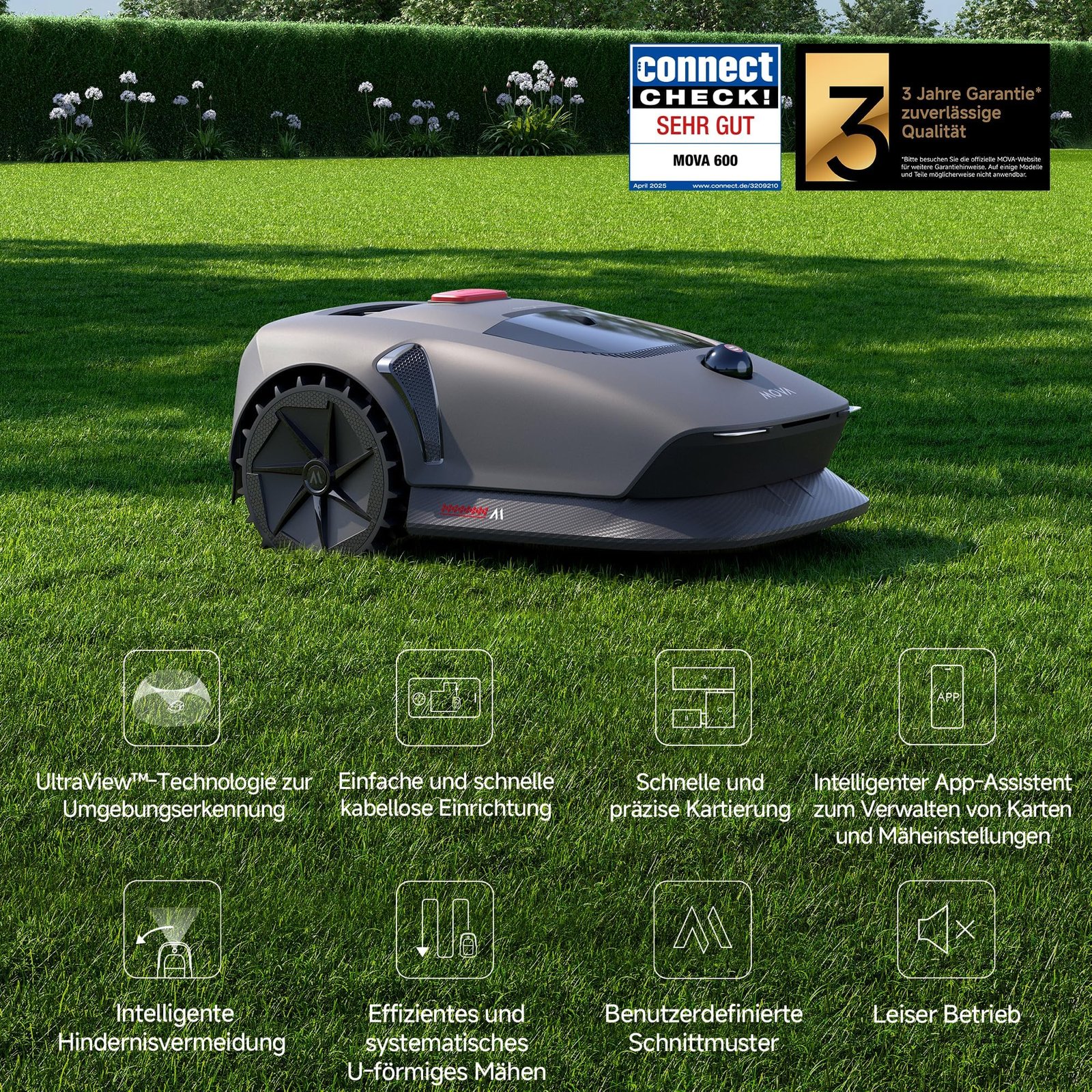 MOVA 600 Kit Mähroboter ohne Begrenzungskabel mit 3D LiDAR, App-Steuerung, Ersatzmesser, bis 800 m²