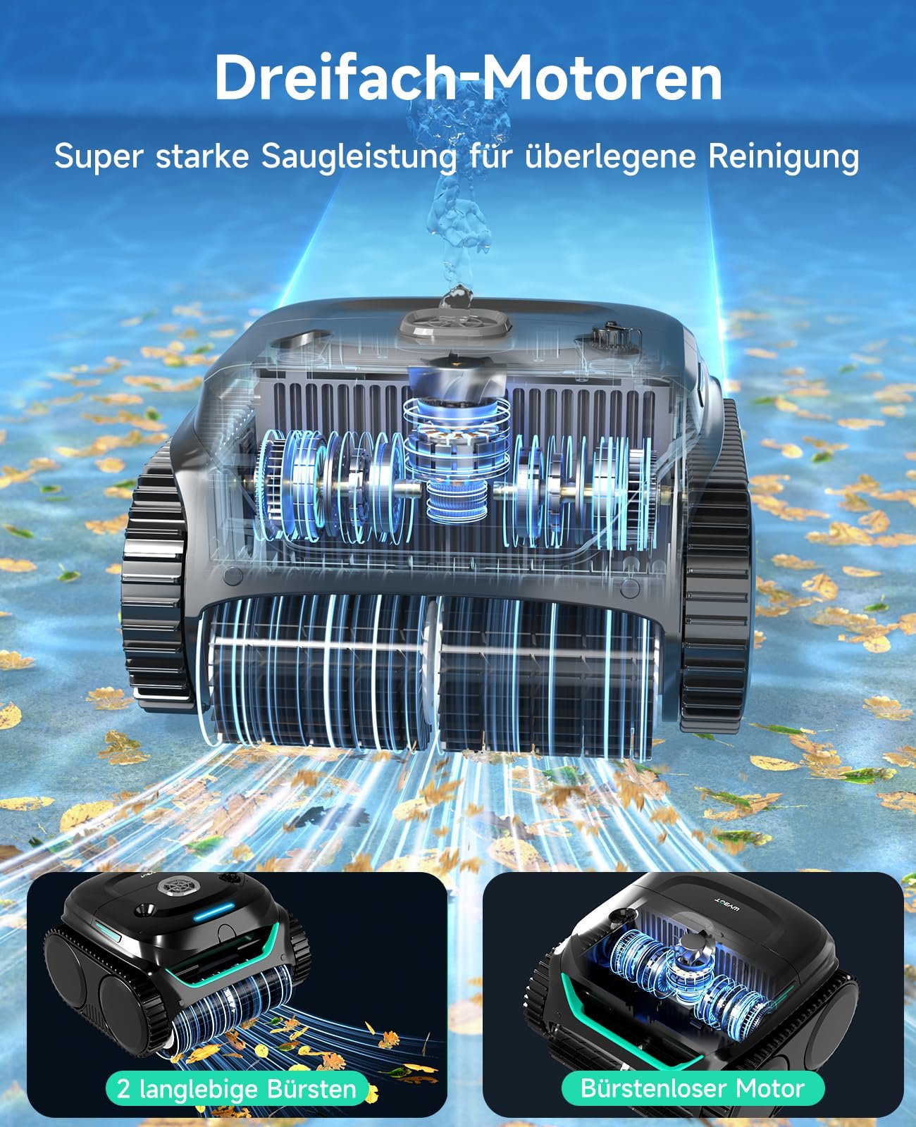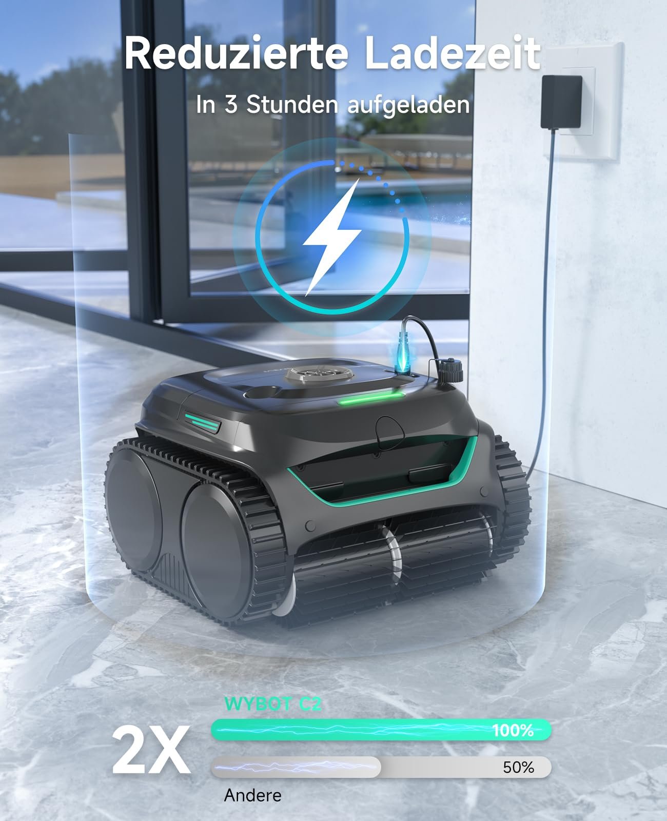 - NEUES 2026-Upgrade: Der Poolroboter C2 wurde komplett überarbeitet – mit 65W-Motor, stärkerer Saugkraft und hochpräzisen Sensoren. Intelligente Reinigung im Echo-Modus (180 Min. Laufzeit). Nur 3 Std. Ladezeit & Doppelfiltration für kristallklares Wasser